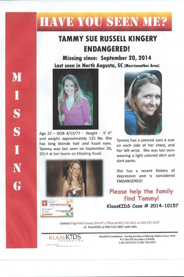 Tamera « Tammy » Kingery est née le 13 avril 1977, elle vivait dans le comté d’Edgefield, en Caroline du Sud aux Etats-Unis. Tammy s’est mariée avec Park Kingery dans les années 1990, et ensemble ils eurent trois enfants. Park était soudeur et Tammy exerçait en tant qu’infirmière.