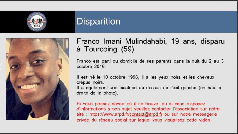 Le 5 octobre, Franco contacte ses parents et prétend être parti avec des amis dans un camping à Arras pour quelques jours. Il leur dit également qu’il doit se rendre à Paris mais sans vouloir leur expliquer pourquoi. Rassurés d’avoir eu des nouvelles de leur fils, les parents de Franco ne se posent pas plus de questions et le laisse vaquer à ses occupations. Le 10 octobre 2016 est le jour du vingtième anniversaire de Franco, ses proches tentent de le contacter pour lui souhaiter son anniversaire, mais le jeune homme ne répond à personne. La disparition de Franco sera signalée le 14 octobre 2016 au commissariat de Lille, puis son dossier sera transféré au commissariat de Tourcoing.